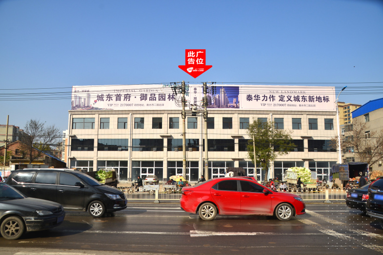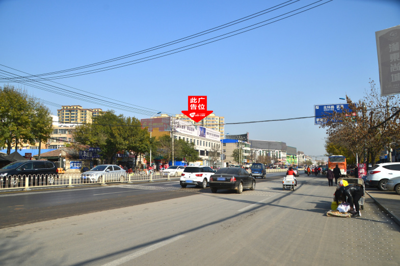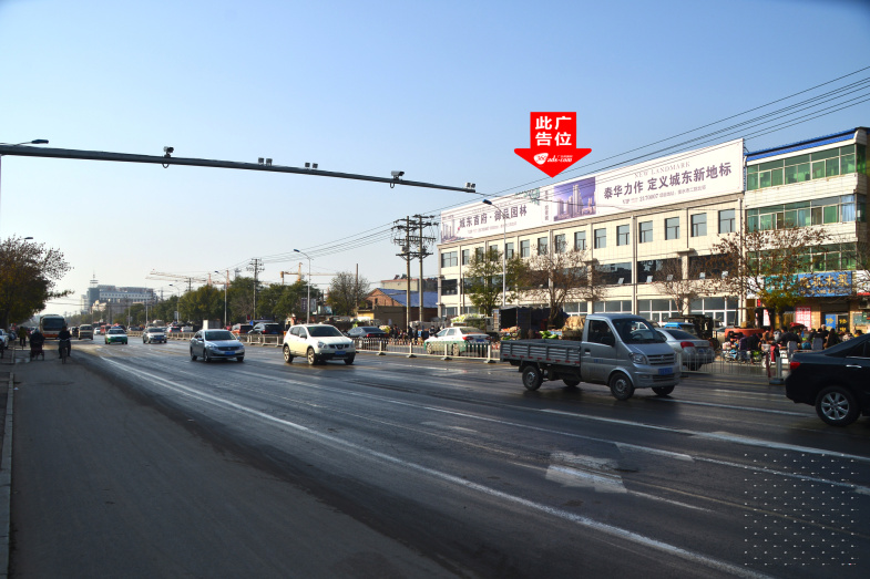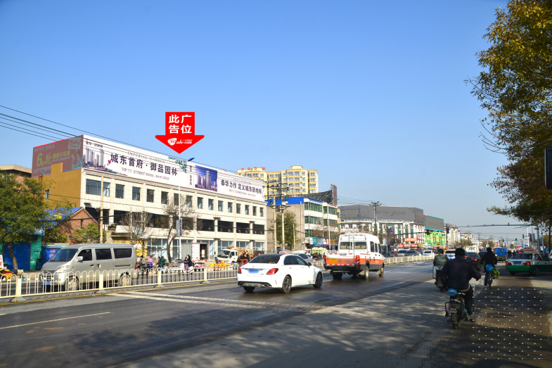 京衡大街与胜利路交汇处向南公路路政对面楼顶大牌